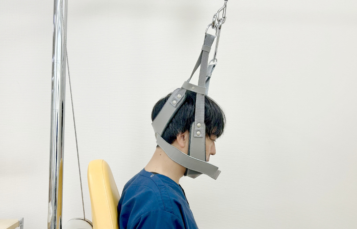 牽引により頚部の負担、ストレッチすることでしびれや痛みを軽減させる治療です。