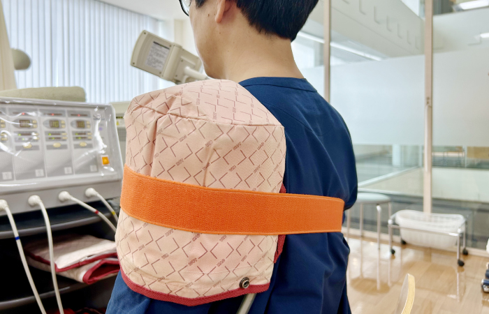 磁器を発生させるホットパックを使用し、温熱と磁力で患部を加温します。